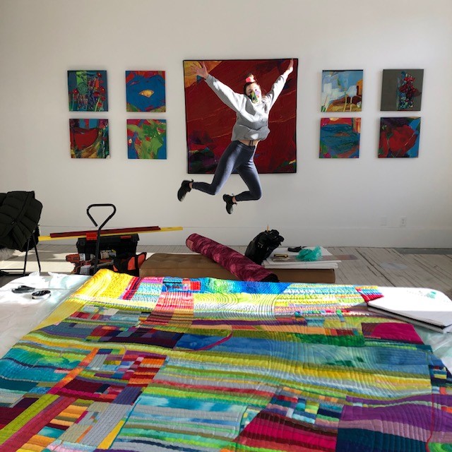 Covid-19 has dominated our lives this past year and though public spaces are slowly opening here in Manitoba, safety protocols are very much in place. I am excited to continue to show the work that has evolved through to March 6th. While there won't be this exact social distancing decal on the floor at la Maison des Artistes, this one comes to us from Donna Clement in Calgary, social distancing measures will be in place and keeping a polite Canadian distance and adhering to all Manitoba health protocols will be expected. I hope if you are in the area you will stop by to check it out in person. Open Tuesday to Friday, 11am -5pm. Saturday noon-4pm. I might just be settled into a sunny corner to work on some hand work for Articulation Textile Group's next exhibit. Stay well. Stay creative!"